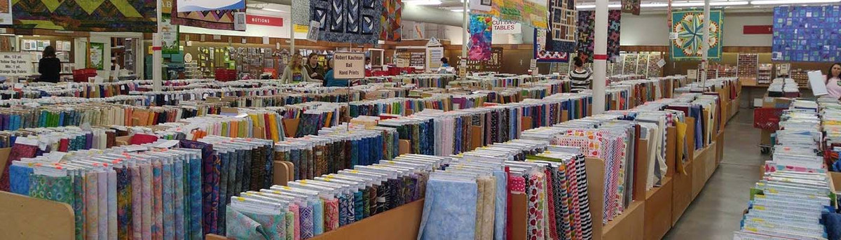 “Row after row of fabric, all grouped by manufacturer, for what seemed like miles, quilters with their shopping buggies piled high with colorful bolts. Cutting tables with multiple cutting stations, and check out counters that would shame any grocery chain in their speed in ringing up the mountains of purchases ~ the entire place was like watching a well oiled machine, expertly organized despite the feeding frenzy atmosphere."