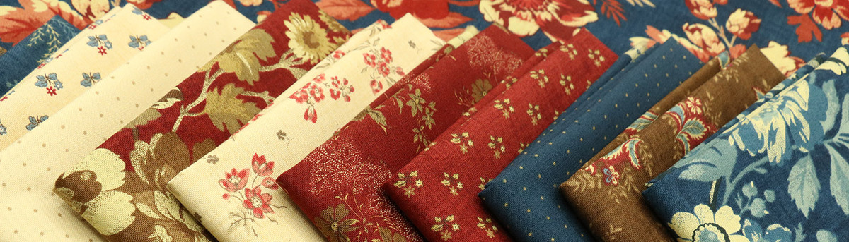 Discovering the stories behind a quilt or a collection of fabrics can be an interesting process. When Maria's Sky arrived, it looked like a typical reproduction fabric. The collection is designed by Betsy Chutchain for Moda Fabrics, and the colors are a deep red, indigo blue, brown, and cream. There are both large-scale and small-scale prints. There are five different quilt kits we carry that have a nice, traditional look. The Maria's Sky quilt kit has a real Americana feel that includes red and cream bars and blue stars. It comes in one of the lovely boxes from Moda, and it feels like opening a treasure chest to find the fabric and pattern inside.